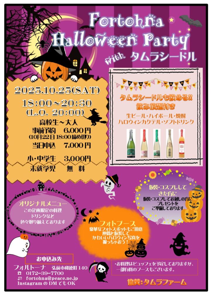 フォルトーナハロウィン🎃パーティー開催決定‼ 今回はタムラファームさんとコラボ!豪華オリジナルブッフェ料理&飲み放題が付いて、なんと6000円!!!!!(事前予約でお得なチケットお早目に)仮装・コスプレ大歓迎(^^♪家族やお友達、会社の仲間で盛り上がろう(^_^)v